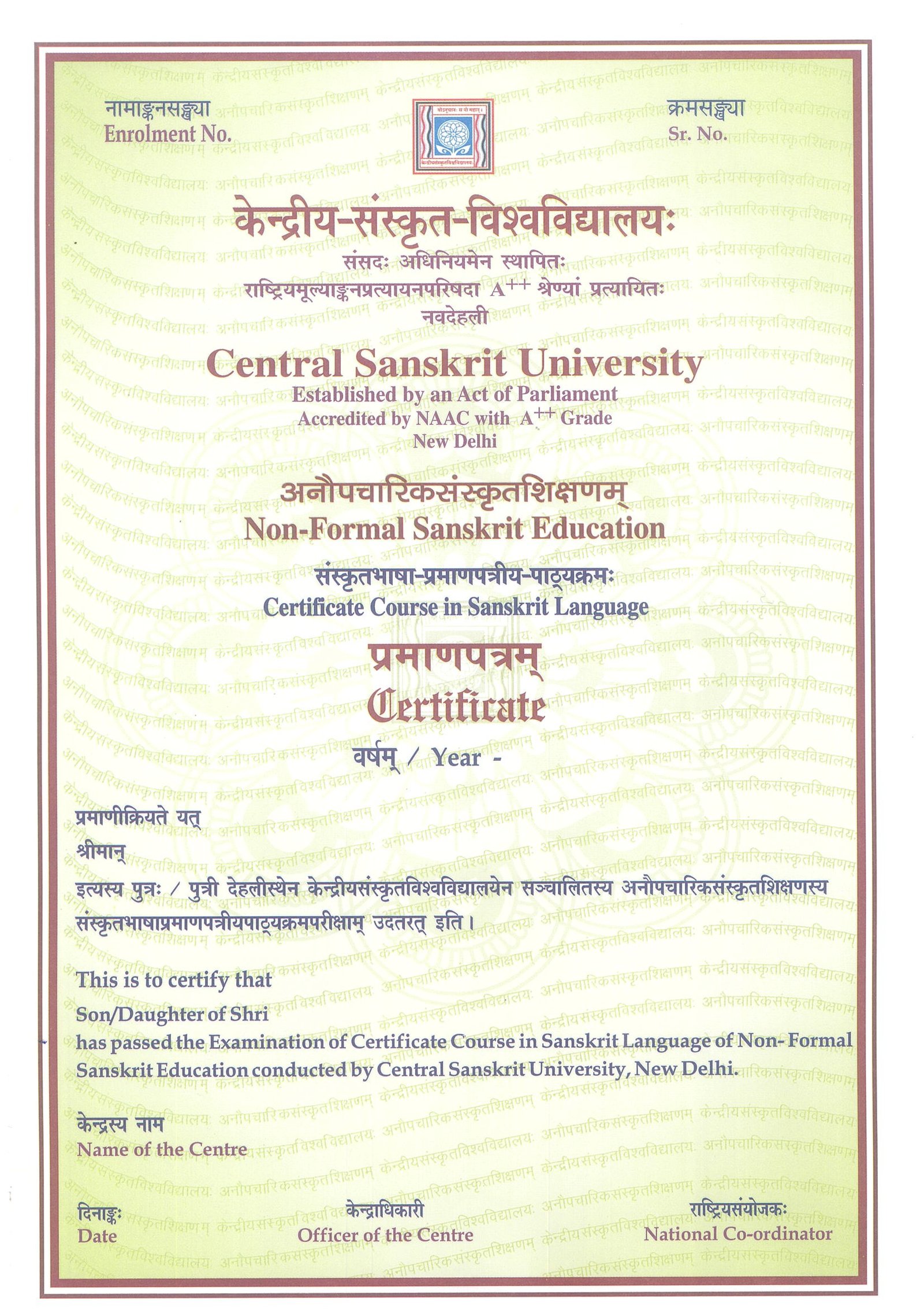 Result for the Certificate Course
